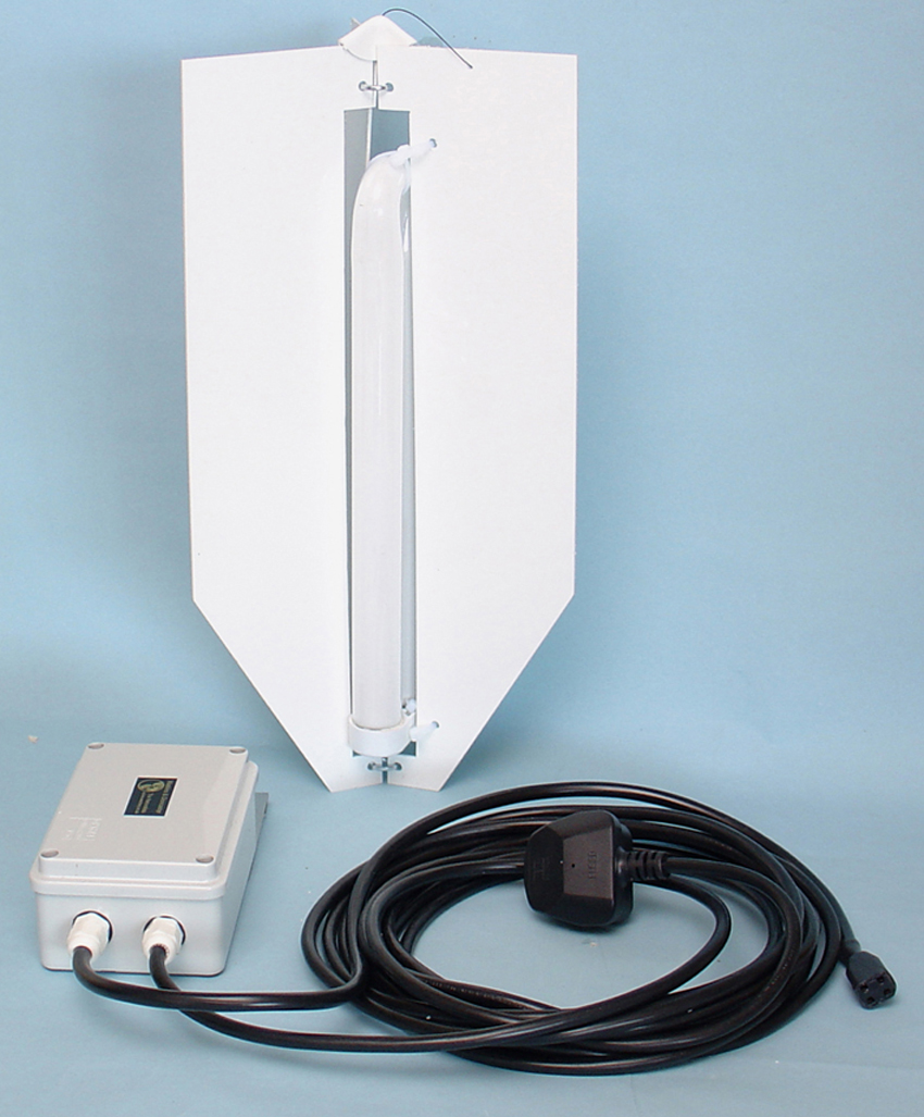 Kit to convert 12V Heath/Rigid traps to operate a 40W tube from the mains.Consists of a 40W tube and vanes unit, ready wired electrics with 6m cable and 3-pin plug. Supplied with instructions.